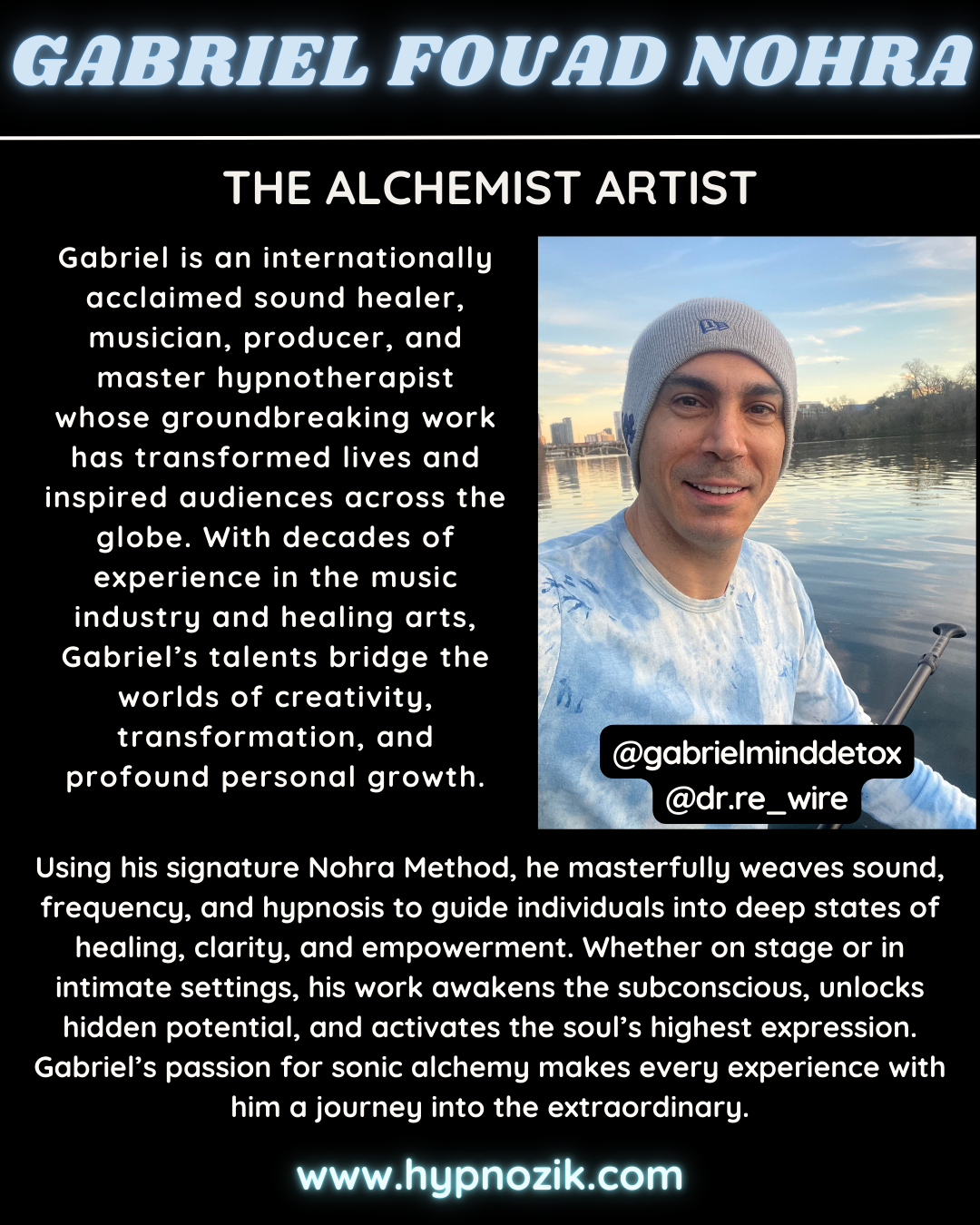 Gabriel Nohra is a Civil War survivor whose extraordinary journey has shaped his life’s mission to spread peace on Earth through the universal language of music. A world-renowned healer, composer, and multilingual hypnotherapist, Gabriel combines ancient wisdom and cutting-edge techniques to help individuals, teams, and communities unlock their full potential.
